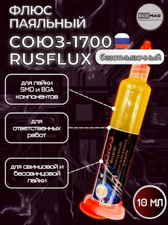 Флюс-гель для пайки SMD, BGA, DIP Союз-1700, 10 мл