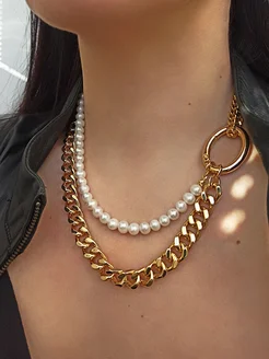 Колье цепь крупная с жемчугом натуральным