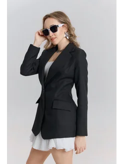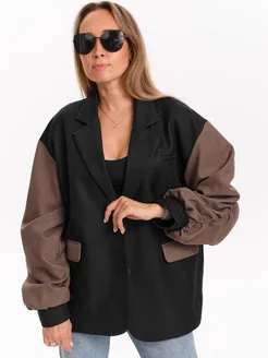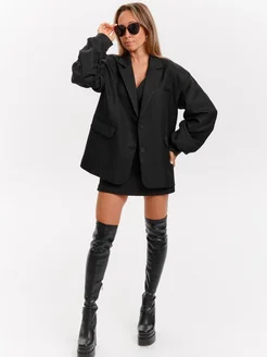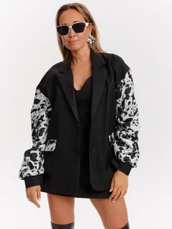 Пиджак оверсайз удлиненный с принтом больших размеров