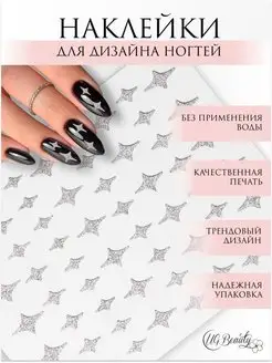 Наклейки слайдеры для ногтей звезды&ромбы серебряные