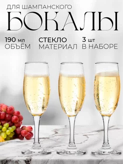 Бокалы для шампанского 190 мл "Bistro", 3 шт, стекло