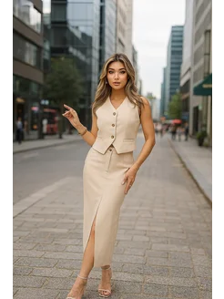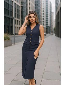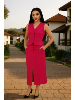 Костюм, двойка жилетка и юбка
