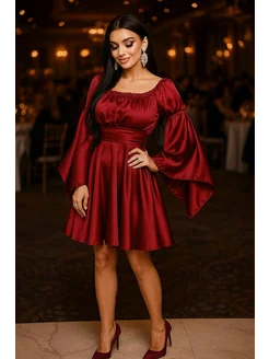 Платье шелк с открытыми плечами