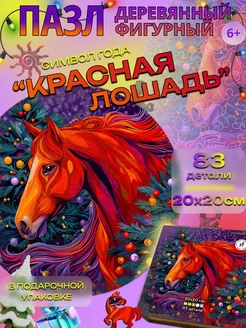 Деревянные пазлы фигурные символ года 2026 Лошадь