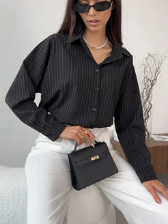 Рубашка черная в полоску офисная