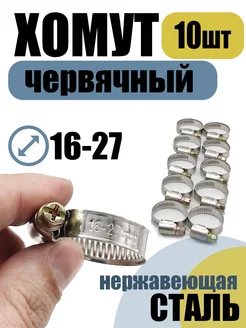 Хомут червячный 16-27 мм, 10 шт нержавеющая сталь