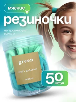Набор мягких резинок для волос зеленые 50 штук