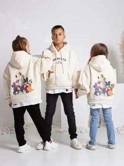 Худи детское с принтом на флисе с капюшоном оверсайз