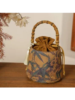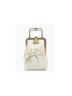 Клатч с жемчужной ручкой и вышивкой "птица"