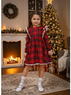 Платье в клетку в садик нарядное новогоднее