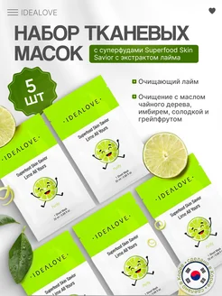 Набор маски для лица тканевые с суперфудами 5 шт Лайм