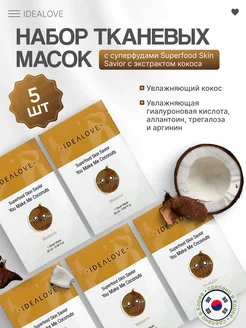 Набор маски для лица тканевые с суперфудами 5 шт Кокос