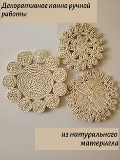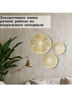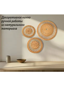 Плетеное панно на стену из соломы 3 шт. 30см, 25см и 20см