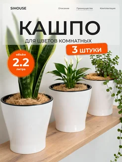 Кашпо для цветов комнатных с автополивом 2,2 л 3 шт