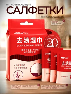 Салфетки от пятен на одежде влажные пятновыводящие 20 штук