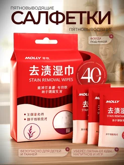 Салфетки от пятен на одежде влажные пятновыводящие 40 штук