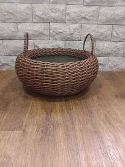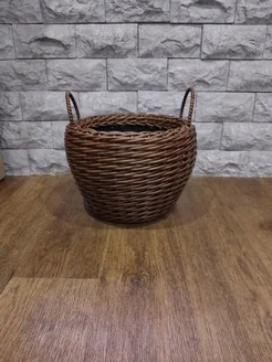 Кашпо 12 литров из ротанга плетеное напольное с ручками