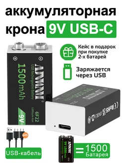 2 шт крона 9V usb аккумуляторная Li-ion 1500 мАч (6f22)