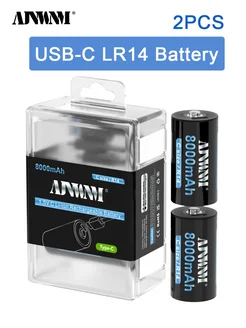 2 шт USB Батарейки R14 литий-ионный С (LR14, R 14) 1.5V