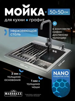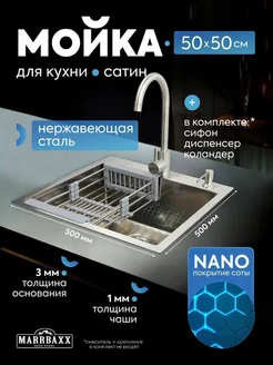 Мойка для кухни нержавейка 50*50. Раковина кухонная премиум