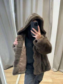 Укороченная зимняя шуба из эко-меха Под соболь