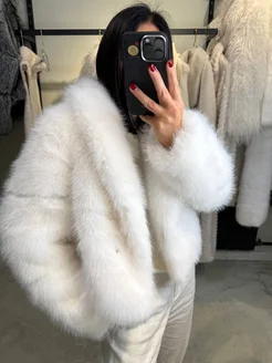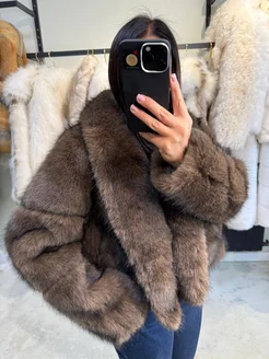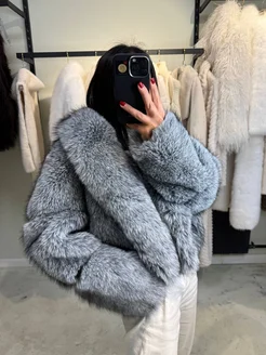 Укороченная зимняя шуба из эко-меха Чернобурка