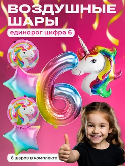 Фольгированные шарики "Единорог и цифра 6" для фотозоны