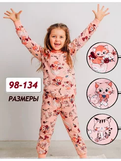 Пижама детская со штанами домашняя с принтом хлопок