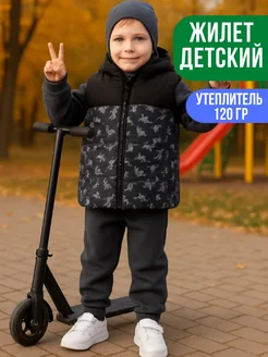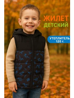 Жилетка детская утепленная с динозаврами