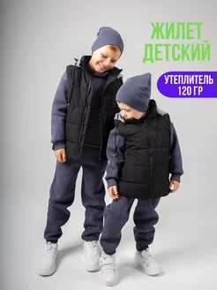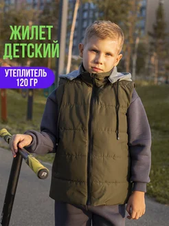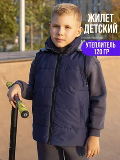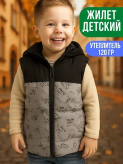 Жилетка детская утепленная для мальчиков с капюшоном