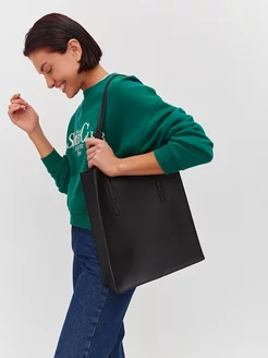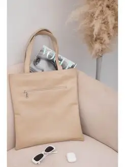 Сумка шоппер кожаная на молнии большая через плечо шопер