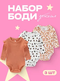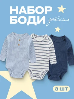 Набор боди детских с принтом с длинным рукавом 3 шт разные