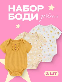 Набор боди детских с короткими рукавами рубчик 3 шт разные