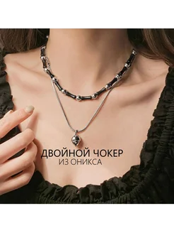 Двойная цепочка чокер из оникса