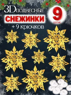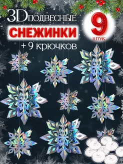 Снежинки подвесные 3D для декора на Новый Год 2026