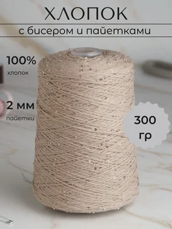 Бобинная пряжа для вязания хлопок с бисером, пайетки