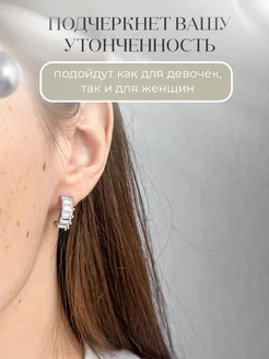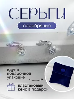Серьги гвоздики прямоугольные с фианитом