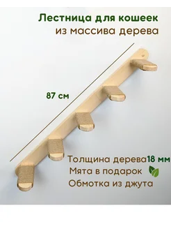 Настенная лесенка для кошек, 87 см, 5 ступеней с когтеточкой