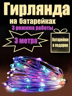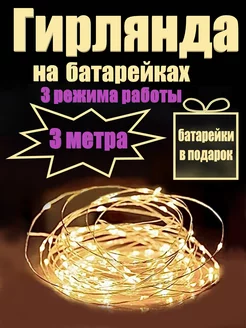 Гирлянда новогодняя на батарейках 3 метра - Роса