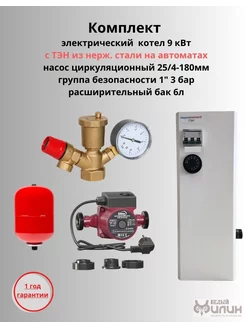 Электрокотел 9 кВт+комплект насос+бак+группа безопасности