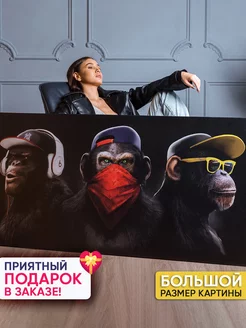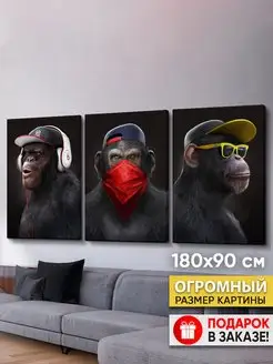 Картины на холсте "3 Обезьяны Black" 180х90 см