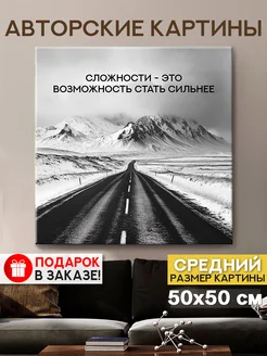Картина на стену мотивация "Стать сильнее" 50х50 см