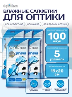 Влажные салфетки для очков, оптики 100 шт 5 уп