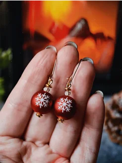Новогодние серьги дизайнерские елочные шары и снежинки