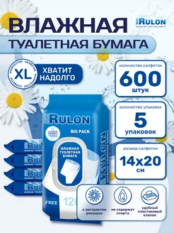 Влажная туалетная бумага MonRulon с клапаном 600 шт. 5 уп