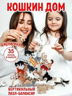 Игрушка 35 коты акробаты. Деревянные пазлы. 3д пазлы