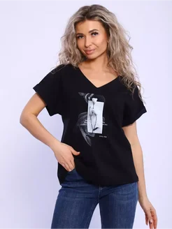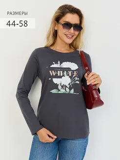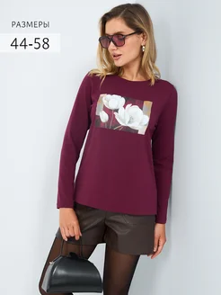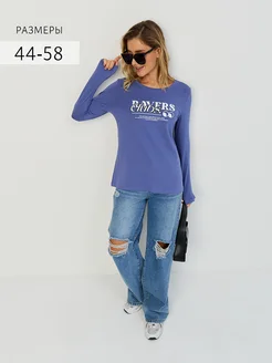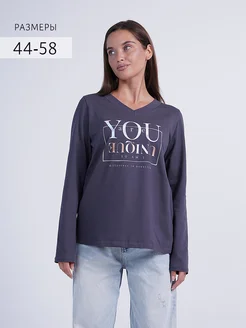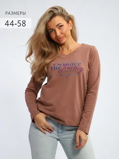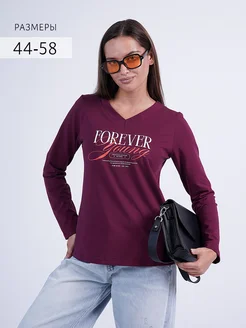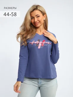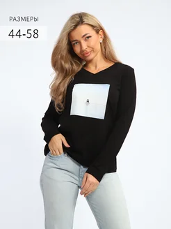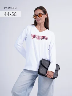 Лонгслив с v-образным вырезом хлопковый с принтом