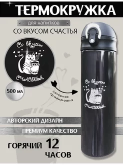 Термокружка 500 мл для чая с ситечком и гравировкой 0.5 л