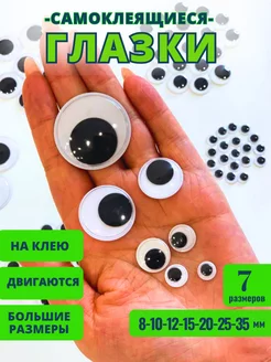 Глазки самоклеящиеся для игрушек от 8 до 35 мм на клею 102шт