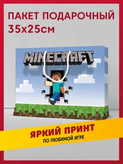 Пакет подарочный сувенирный с принтом Майнкрафт Стив и Алекс